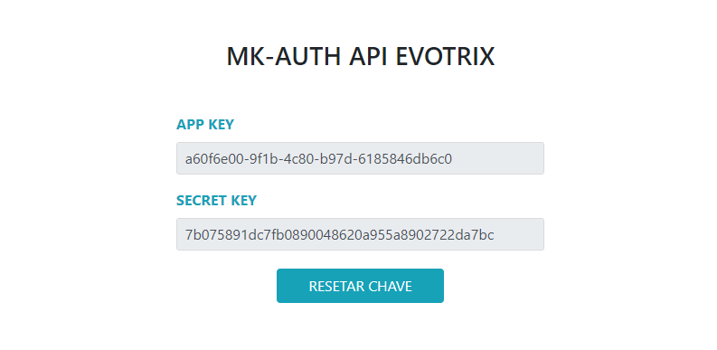 Na tela que abrir, digite Evotrix nos dois campos e clique em salvar.